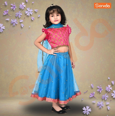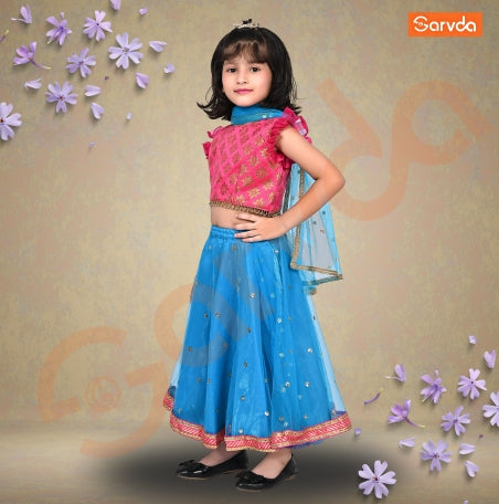 Prebooking Firozi Net Lahenga And Pink Choli